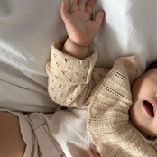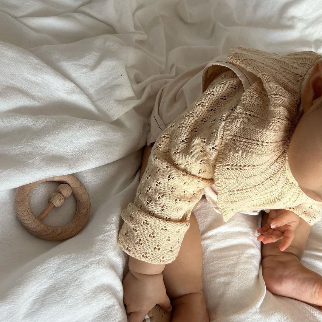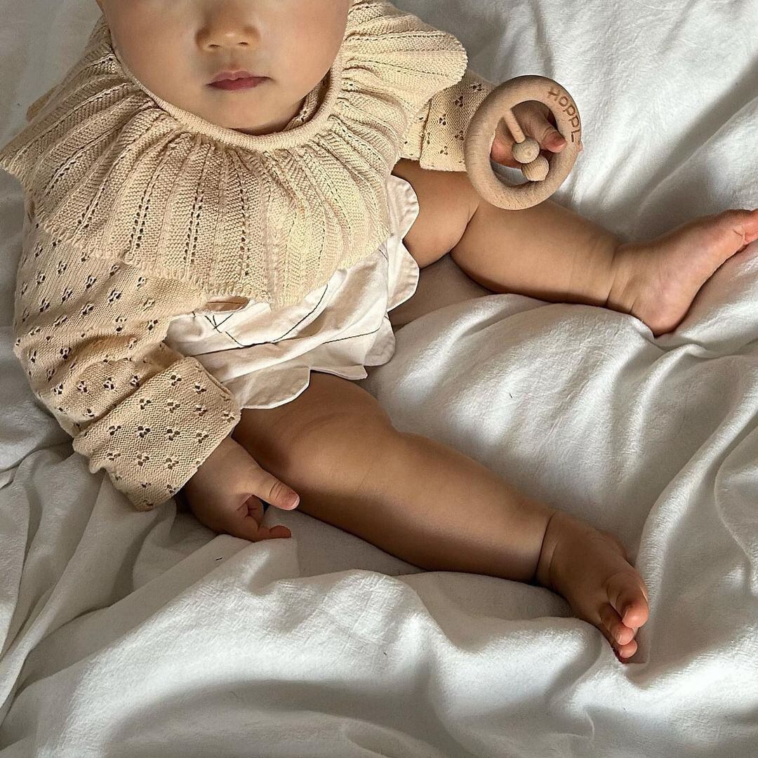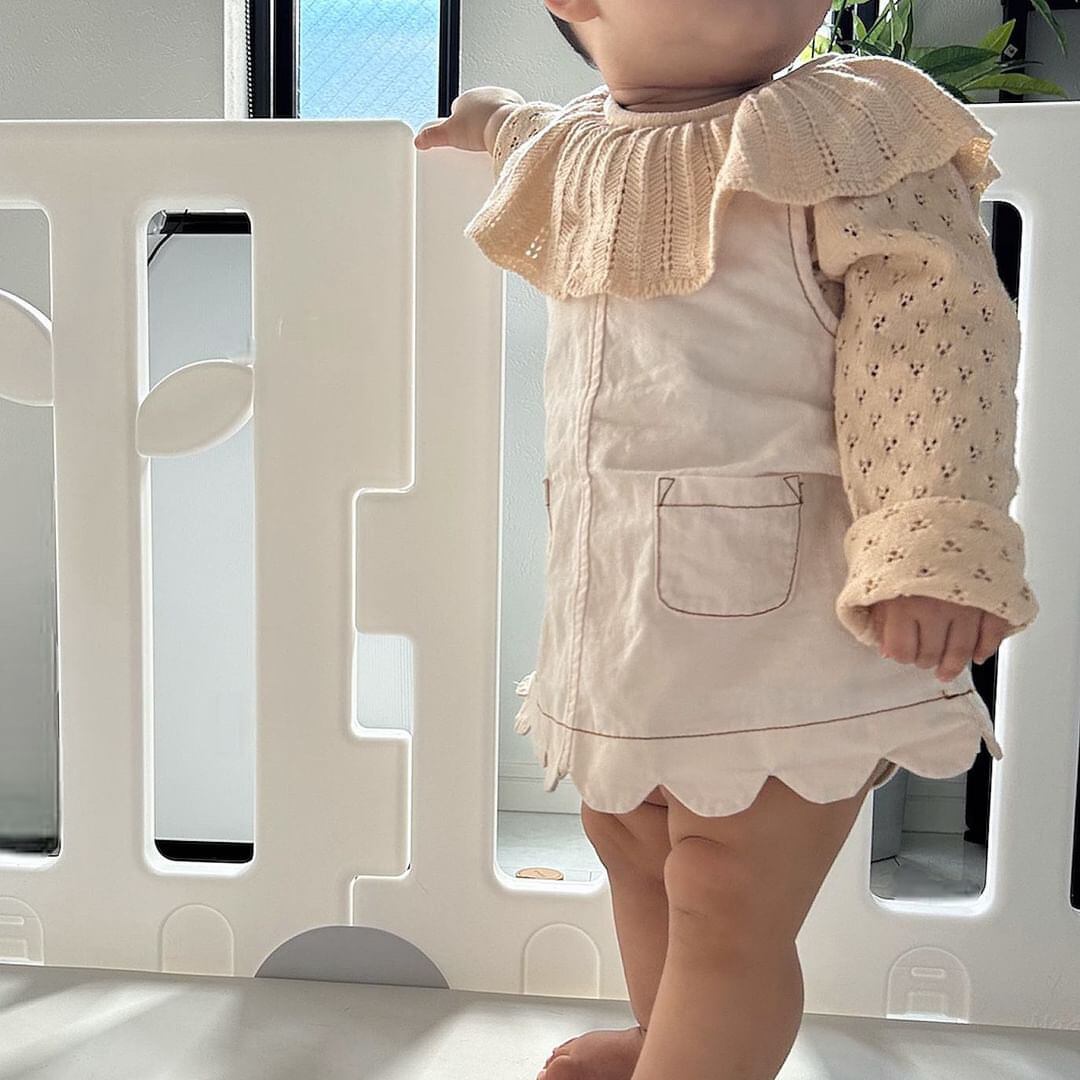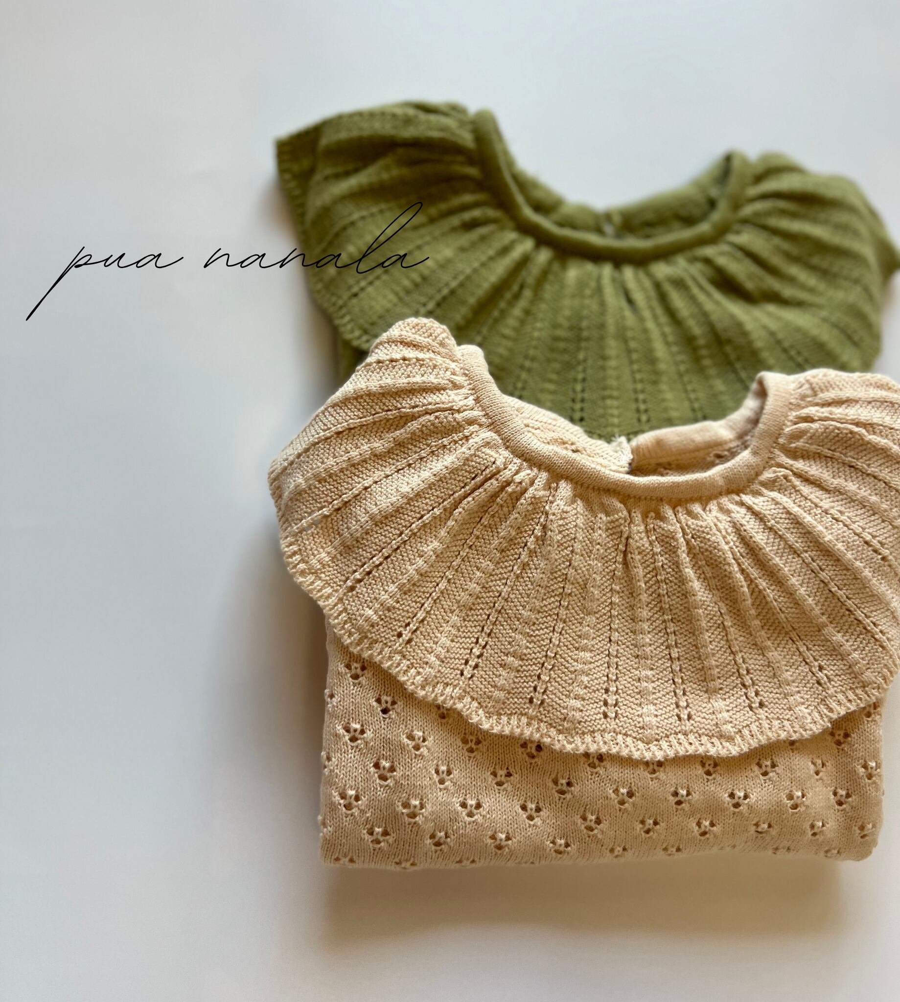 大きめの襟に透かし編みのデザインが